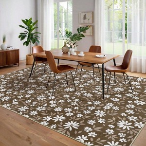 Small Floral Pattern Carpet, Modern Leaf Print, Machine Washabl