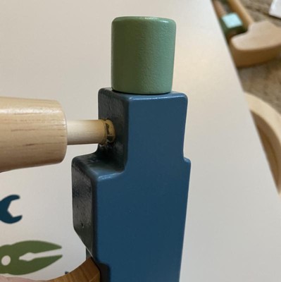 So disappointed with this toy. I loved the design and colors, and was excited about the carrying case. However, the wood is cracking through the paint in several places, the ‘drill’ is already breaking and didn’t have any functionality that I could discover in the first place. Will be returning.