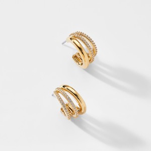These dainty hoop earrings give the illusion of three huggies in one with pave CZ detail.