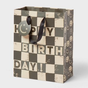 Small Checkered 'Happy Birthday' Birthday Gift Bag with Tag Black/Natural - Spritz™