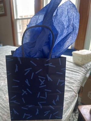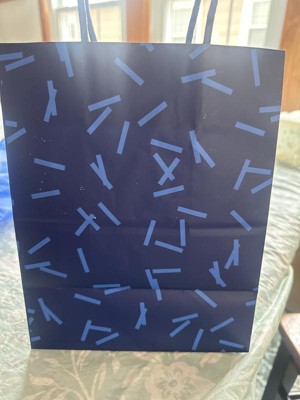 Navy blue gift bag that I can use for most occasions. It saves me the trouble of using wrapping paper especially on hard to wrap items. The 2 different colors of blue makes using tissue paper to hide the gift easy to coordinate