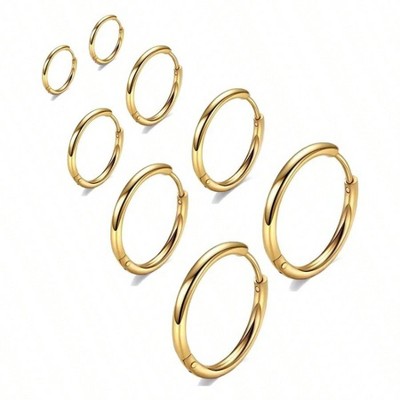 Small gold hoop earrings set for women with diamond pave and sterling silver posts.