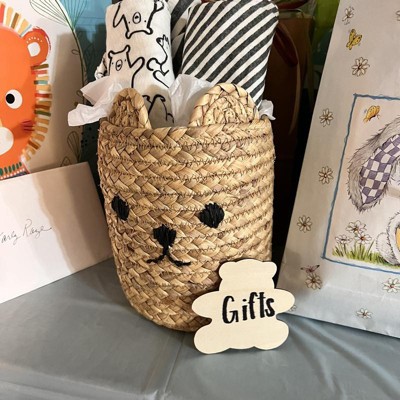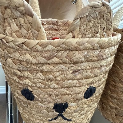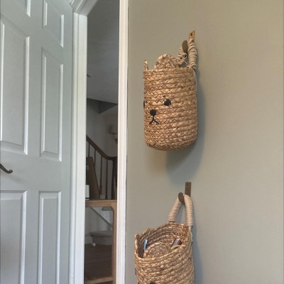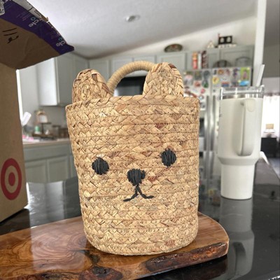 Accent your kid's space with the cute appeal of this Small Hanging Bear Basket with One Handle from cloud island™. Playfully designed to look like a bear's face with eyes, nose and a mouth, this storage basket adds a charming touch to their decor. Its natural shade makes it suitable for a range of decor styles and colors in their room. Simply hang this bear storage basket on the wall as a solo piece or with coordinating animal baskets to keep small items organized and out of sight.