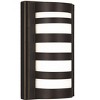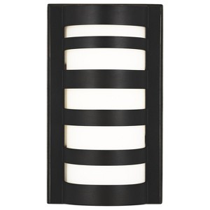 Low-profile, modern style integrated LED exterior sconce that complements urban and commercial structures. The Rebay one light outdoor wall fixture in antique bronze creates a warm and inviting welcome presentation for your home's exterior.