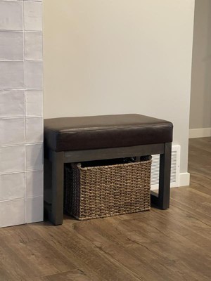 I bought this for our walk-in closet. I needed something just this size to fill a space, a spot to put on shoes and socks. This is perfect and solid. I only wish it had a richer color wood and finish. I love the "leather" it is the fabric that looks like leather, feels like fabric. It's not vinyl.