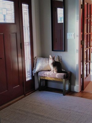 Was not sure if we would like this bench when it came but it very easy to put together and looks great in our foyer as a small seat for the kids or guests to put shoes on and off. Fits are just right as I didn’t want a large seat in foyer but needed something for practical use. The grey seat cover I was not sure we would like but it blends in beautiful with our grey painted walls. Definitely recommend for the right space.