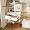 - 3-Color LED Light: Equipped with a mirror featuring adjustable LED lights with 3 brightness modes (cool white, natural light, warm yellow) for optimal lighting, the vanity set customizes the lighting to suit your makeup needs. Short press to turn on the light, long press to adjust the brightness
