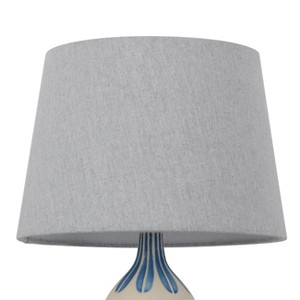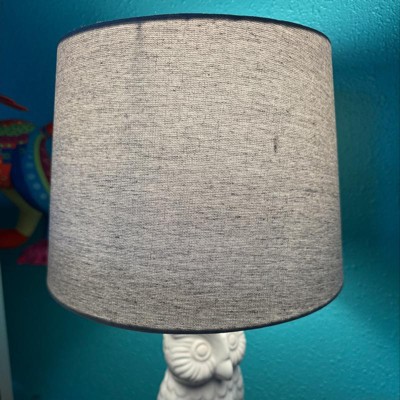 - Gray linen lampshade filters light to cast a soft, warm glow in your space