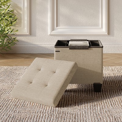 Small Ottoman Foot Rest, Foot Stool with Linen Fabric Upholstery and Plastic Legs, Cube Ottoman