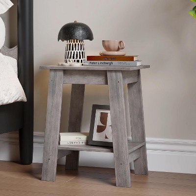 Upgrade your living space with this small wood side table—an ideal solution for apartments, bedrooms, and compact homes. Featuring a sleek rectangular silhouette and minimalist design, this accent table fits perfectly beside your bed, sofa, or reading chair. Two open storage shelves provide convenient space for your favorite books, decorative pieces, or everyday essentials. Crafted with a durable particleboard top and sturdy metal legs, this end table delivers both stability and a modern look that suits a range of décor styles. Lightweight and easy to assemble with included instructions, it’s the perfect versatile accent table for any modern home.