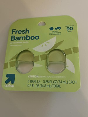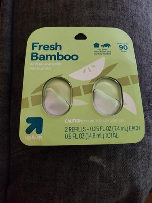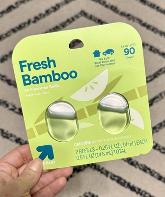 Keep your air freshener holders filled with these 2-Count Fresh Bamboo Air Freshener Refills from up&up™. These two air freshener refills are compatible with up&up's small room and car clip holders. Lasting up to 90 days total, they work to fight tough odors and have a fresh bamboo scent you're sure to love.