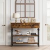 - Stable Console Table: Black metal frame + high-quality particle board/MDF. Sturdy structure: tabletop holds 150 lbs, each shelf 30 lbs, each drawer 15 lbs.