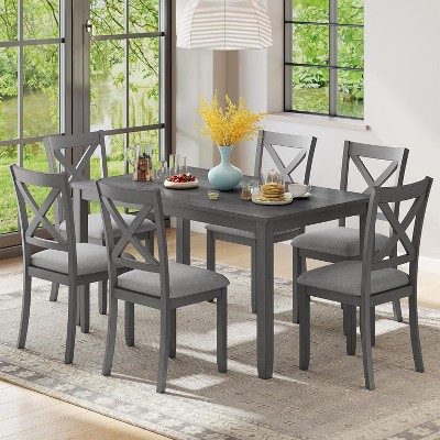Small Space Dining Set for 4, 5 Pieces Rectangular Solid Wood Table Set with 4 Upholstered Chairs for Kitchen, DARK GREY,DARK GREY+Oak