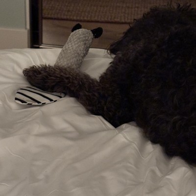 This dog toy has garnered positive feedback for its durability and engaging features, making it a favorite among various breeds. Many guests appreciate its squeaker and crinkle tail, which keep their pets entertained for extended periods. While some guests noted that it may not withstand aggressive chewers, overall, it has proven to be a reliable option for playful pups. Its cute design and affordability further enhance its appeal, making it a great choice for dog owners.