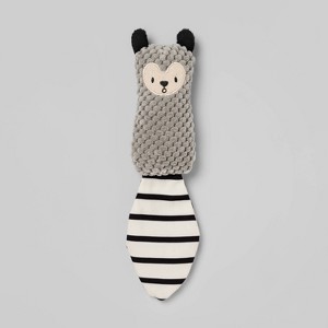 Your pup will have a hopping good time with the Small Squirrel Dog Toy from Boots & Barkley™. With oh-so-adorable raccoon face detailing on a textured backdrop, ears and striped tail, this plush dog toy is designed with a soft fill and durable exterior that'll have your pet cuddle and toss it around for hours of entertainment and fun. Whether you and your pup are playing a frisky game of fetch or happily squeaking it, this small squirrel toy brings instant joy for your pup.