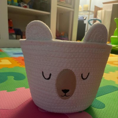 Keep your kid's space mess-free when you add this Small Tapered Round Coiled Rope Sleepy Bear Round Basket from cloud island™. Beautifully woven from cotton material, this small tapered basket comes in a circular shape to stash away blankets, toys and other items to help keep their space neat and tidy. It features an illustration of an adorable sleepy bear on the front with ears for a fun look they'll love, and in a solid hue for easily mixing with a range of decor styles. You can also add other storage bins of varying sizes and designs to create a coordinated look while giving their room extra storage space.
