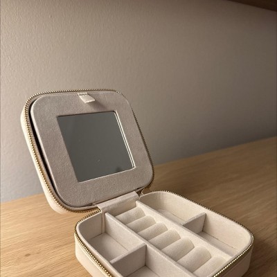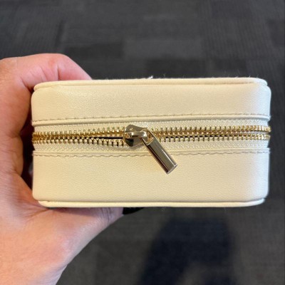 Small Travel Accessory Organizer Off-White - Brightroom™: Jewelry Storage with Inside Mirror, Faux Leather, Adult Use