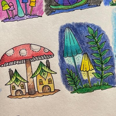 Easy to color for a little quiet time . I like the things that are drawn on the pages . Cute little book . Just right for on the go to put in purse . Art on the go . I especially enjoy coloring the flowers and mushrooms .