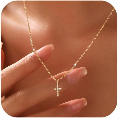 SmallRig Dainty Cross Necklace for Women, 925 Sterling Silver 14K Gold Plated CZ Pendant Religious Jewelry Gift Gold
