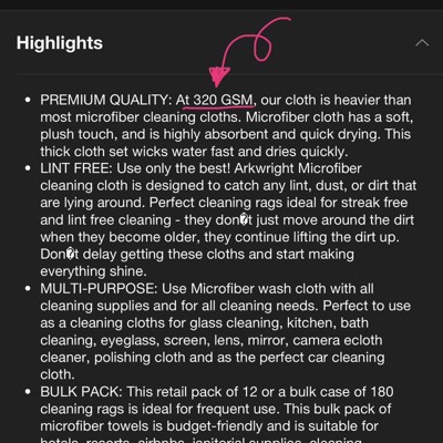 I got this because it was supposed to be a 320 GSM high-density microfiber (soft and plushy) but the cloths that I got are 215 GSM, not plushy not heavy-weight at all. This is false advertising I’m extremely disappointed