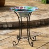Hand painted glass and streaming, bubbling water are a combination so beautiful we had to create an entire collection of glass birdbaths! The Koi’s bowl features three white and red koi fish swimming in a bed of ocean blue water and one pink lotus. The powder coated black steel frame is easy to assemble and locks into place to ensure stability.
