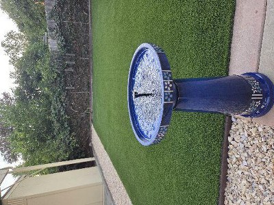 The Louisa IntelliSolar Birdbath is a beautiful cobalt blue birdbath with decorative hand laid floral tiles. It is constructed of durable black clay ceramic and will hold up sturdily and elegantly in your favorite garden or patio space. This birdbath includes our patent-pending IntelliSolar panel which will allow water to stream soft ambient sounds, enhancing your time spent relaxing outdoors.