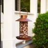 The Adelie Mosaic Glass Solar Bird Feeder will be the new hangout spot for all the birds in your neighborhood! This steel coated cylindrical bird feeder includes a durable steel chain that is perfect for hanging from a shepherd's crook, tree, or under your roof's siding. Simply fill the shallow bowl at the bottom of the lantern with bird seed, and find a sunny spot outdoors to hang the lantern. The solar panel at the top of the lantern requires direct sunlight during the day to charge. Once darkness settles in, the 24 mini LEDs wrapped around the inner cylinder will illuminate the colorful mosaic tiles. Evening illumination will last up to eight hours on a full charge.