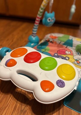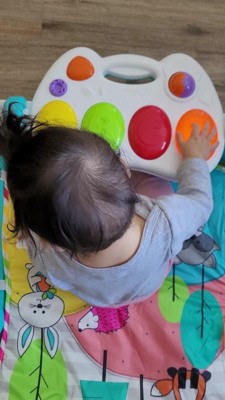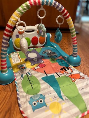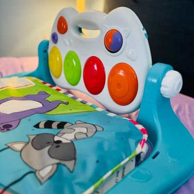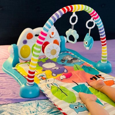 [This review was collected as part of a promotion.] This is a great addition to the baby play gym market, we love the piano that they can kick! It’s so much fun and it’s great that you can adjust the piano for babies to practice sitting up and playing. My only complaints are that it’s hard to get the mat secured to the gym itself, and unlike other play gyms on the market you have to completely take apart the piano system in order to adjust it to a sitting position.