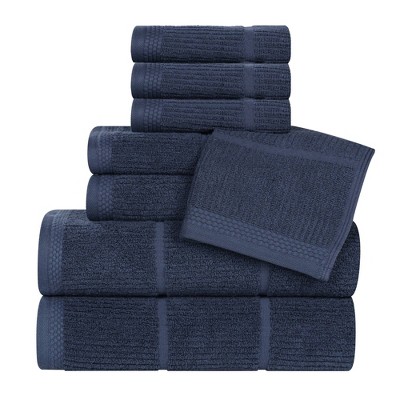 Indulge in the spa-like serenity of the Blue Nile Mills Smart Twist Viscose Cotton Blend 8 Piece Towel Set. Each towel is a testament to meticulous craftsmanship, designed to elevate your daily routine into a moment of pure bliss. The unique low-twist weave creates an unparalleled level of softness and absorbency, while the classic solid design, accented by a refined border, adds a touch of timeless elegance to your bathroom.