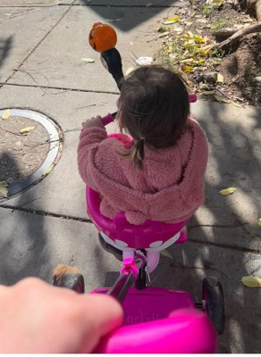 [This review was collected as part of a promotion.] Our toddler loves this tricycle! Were able to walk to the park and guide her while she uses the pedals. It was easy to assemble and we love that it’ll grow with her, for a bit anyway.
