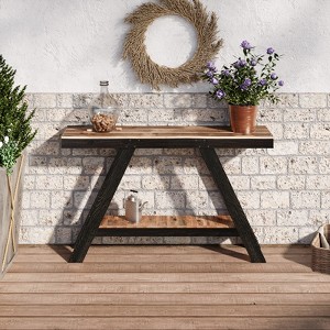 SMARTSTANDARD Console Tables are made from solid wood that has been previously used in structures or other products and has naturally aged or weathered over time. This gives the table a rustic, distressed appearance with unique textures and colors that are characteristic of weathered wood. The use of reclaimed wood is often valued for its sustainability, as it re-purposes existing materials, and for its aesthetic, which adds character and history to the furniture. Solid wood provides a stable and sturdy surface, making it ideal for supporting heavy items like decorative pieces, lamps, TV or any other electronics.