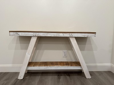 SMARTSTANDARD Console Tables are made from solid wood that has been previously used in structures or other products and has naturally aged or weathered over time. This gives the table a rustic, distressed appearance with unique textures and colors that are characteristic of weathered wood. The use of reclaimed wood is often valued for its sustainability, as it re-purposes existing materials, and for its aesthetic, which adds character and history to the furniture. Solid wood provides a stable and sturdy surface, making it ideal for supporting heavy items like decorative pieces, lamps, TV or any other electronics.