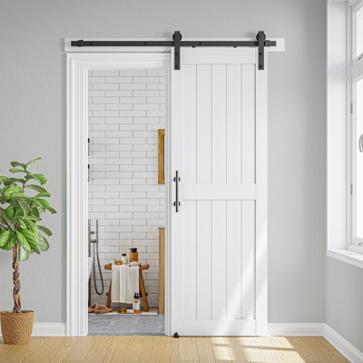 SMARTSTANDARD 84 in. Height White MDF Solid Core Interior Sliding Barn Door with Hardware Kit