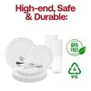 This elegant disposable plastic tableware value set presents a comprehensive solution for your wedding dining needs. This set includes 36 dinner plates, 36 salad plates, 36 forks, 36 spoons, 36 knives, and 36 12 oz. tumblers, all crafted with elegance and convenience. Made from high-quality plastic, each piece offers the sophistication of glassware without the worry of breakage. The clear design adds a touch of modern flair to your table settings, enhancing the visual appeal of your reception. Perfect for any wedding celebration, this value set promises seamless dining experiences and effortless cleanup, ensuring that your special day is memorable for all the right reasons.