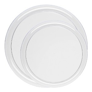 Order our Clear Flat Round Disposable Plastic Dinnerware Set at the best price guaranteed. Perfect for events, weddings, and gatherings shop now and save!