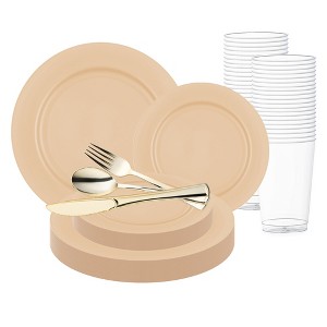- Service for 30: 30 Dinner plates, 30 salad plates, 30 forks, 30 spoons, 30 knives and 30 12-ounce Tumblers