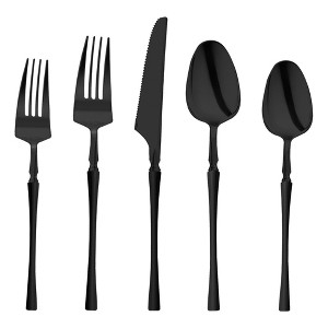 Product Name: Solid Black Moderno Disposable Plastic Cutlery Set - 20 Spoons, 20 Forks, 20 Knives, 20 Dessert Spoons, and 20 Dessert Forks