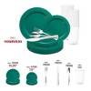 - Service for 30: 30 Dinner plates, 30 salad plates, 30 forks, 30 spoons, 30 knives and 30 12-ounce Tumblers