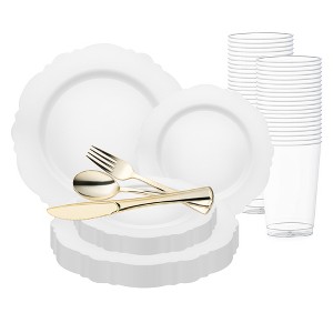 Get our Solid White Blossom Disposable Plastic Wedding Set. This low-priced set offers great value and rapid delivery. Elevate your big wedding day today!