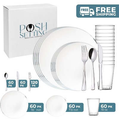- Complete Service for 60 Guests – Includes 60 dinner plates, 60 salad plates, 60 dessert bowls, 60 forks, 60 spoons, 60 knives, 60 cups, 60 napkins, and 8 tablecloths.