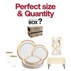 - Gold with White Flatware – Durable 7.5" forks, spoons, and knives blend strength with elegance.