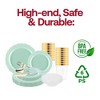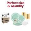 Create an unforgettable dining experience with this beautifully curated disposable plastic tableware ensemble, where every detail reflects a sense of vintage allure and refinement. Reminiscent of bygone eras, this enchanting ensemble brings a touch of vintage charm to any occasion. The soothing turquoise hue evokes tranquility and sophistication, while the vintage-inspired design elements add a whimsical touch to your table setting. Ideal for garden parties, bridal showers, or special gatherings, this set features meticulously crafted dinner plates, salad plates, bowls, spoons, forks, knives, and cups, each exuding timeless elegance.