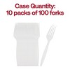 These fancy disposable plastic forks are perfect for any event. The white color is a modern and convenient way to brighten up any event. They are perfect for single-party use, so they don't require long-lasting cleanup. With 10 packs of 100 forks, you will be able to use them without having to worry about running out.