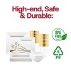This trendy white square disposable plastic tableware set offers convenience and elegance for any occasion. It's a complete solution for gatherings with dinner plates, salad plates, bowls, soup spoons, dinner forks, knives, salad forks, and cups. The sleek white square design adds a touch of sophistication to any table setting, suitable for formal events or casual gatherings. Crafted from durable plastic, this set ensures sturdy performance while being disposable for easy cleanup. Whether hosting a dinner party, picnic, or catering event, this versatile set provides all the essentials for serving meals with style and practicality, simplifying hosting duties without sacrificing aesthetics.