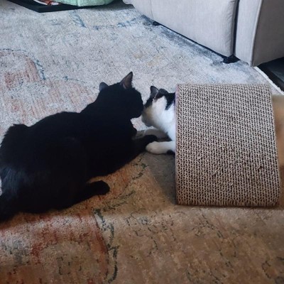 [This review was collected as part of a promotion.] The cats just love this Angled Corrugate Cat Scratcher with Catnip Infusion Technology™. You can place it against the wall or lay it on the floor, however your cat likes it. I would definitely recommend this to everyone with cats!