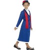 Now your little girl can dress up just like her favorite story book character with this Victorian Nanny costume for kids. This adorable costume features a smart royal blue jacket style dress, a matching hat with flower, and a red scarf. She's sure to have a fun day filled with adventure in this darling costume.