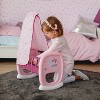 With interesting details, unique design and high quality, the Baby Nurse Cradle will surely delight every little girl. This cradle features a pink fabric canopy that can be removed and washed. It is decorated in fashionable colors, characteristic of the new Baby Nurse collection. The cradle can comfortable accommodate any 17 inch doll (not included). Recommended for ages 18 months and up.