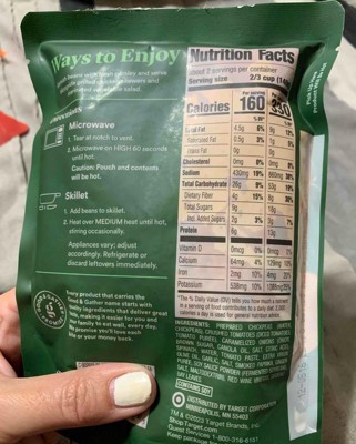 Whip up a quick and tasty side dish for busy weeknight dinners with this 10-Ounce Seasoned Chickpeas Microwavable Pouch from Good & Gather™. Made with no artificial colors, flavors or preservatives, this pouch contains smoked paprika-seasoned chickpeas plus caramelized onions, spinach and tomatoes. A delicious pairing with grilled chicken, marinated veggies and much more, the pouch is ready after just 60 seconds in the microwave.