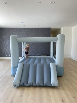 We love this bounce house! It’s aesthetically pleasing and great quality! My only complaint is that it’s VERY hard for younger kids to climb into. My son is almost 3 and very very tall for his age, and we have to lift him up into it. This is incredibly annoying because he wants to be able to do it himself but the slide is much too steep for him to do so. I really wish there were hand and foot pockets/steps to allow easier access. It would be a 10/10 if it did.