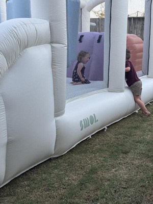 We love the Smol obstacle course ! My daughter ( three years old ), could spend hours, playing outside/ racing her friends. The weight limit is somewhat higher, compared to smaller inflatables ( can withstand 300 pounds/ 5 kids at a time ). Very easy to set up and deflate ( my husband was able to assemble without assistance ) ! Storage is also easy/ compact ! We love that it isn’t a traditional moon bounce ( includes climbing / navigating around objects ) but still allows for kids to jump and bounce, while being aesthetically pleasing, with neutral tones. I would highly recommend, if you are looking for hours of fun, for your little ones! We will be purchasing more Smol products in the near future.